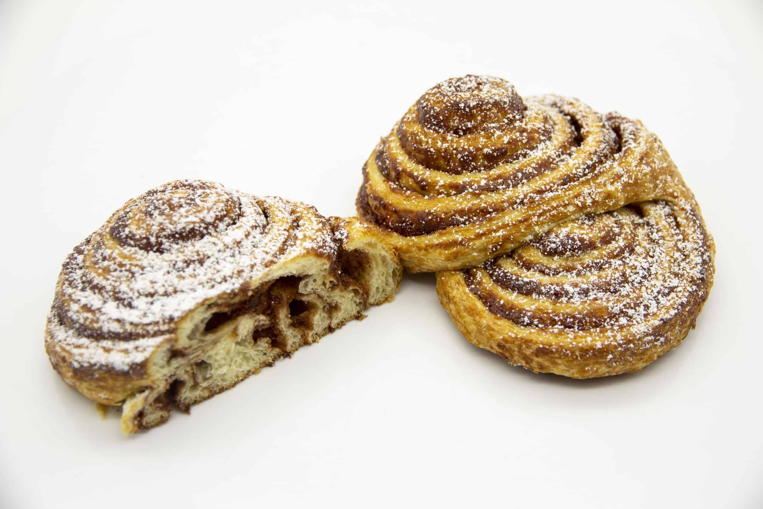 Valmistatud pärmi-lehttaignast kaneeli täidisega, peal puudersuhkur.